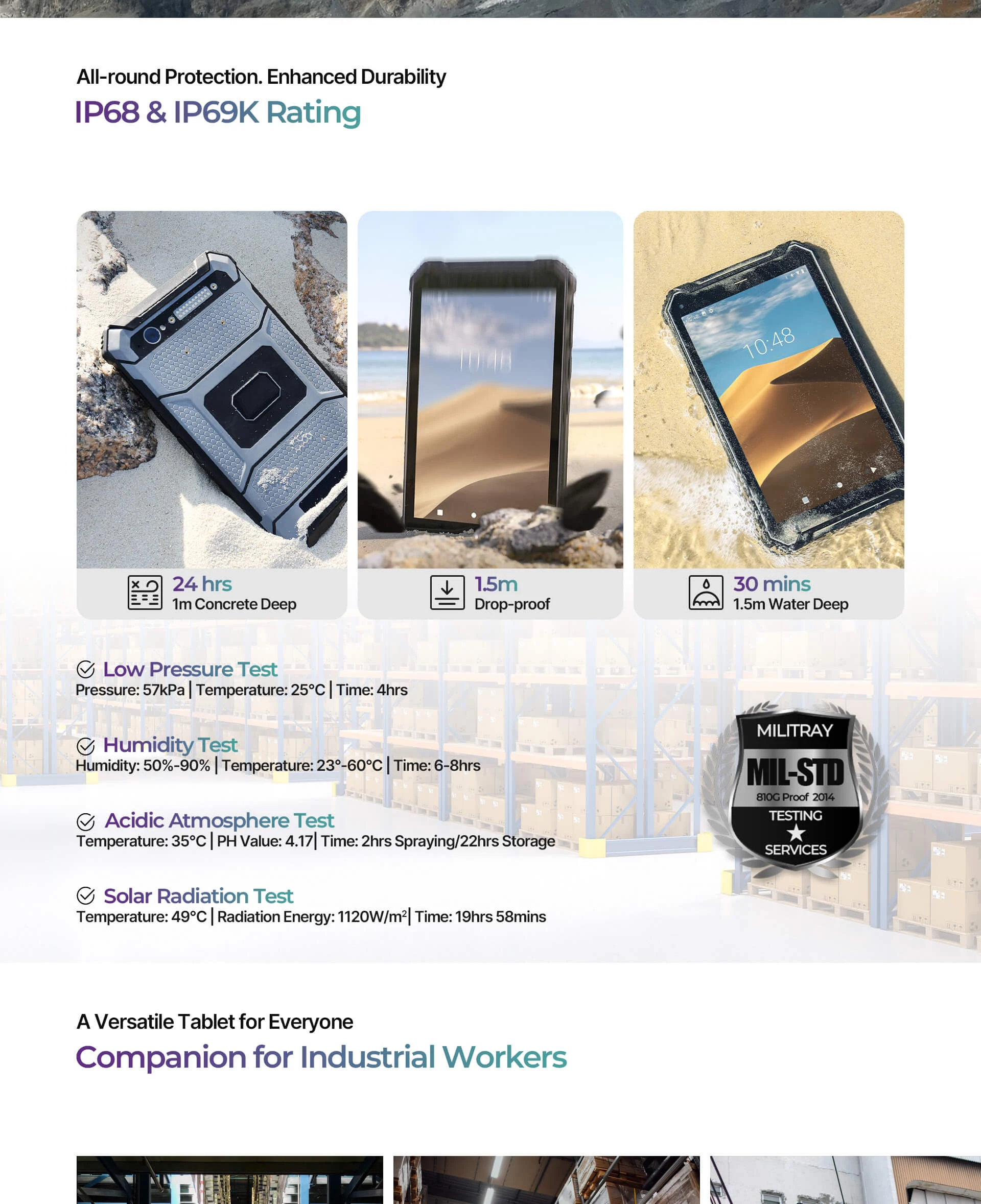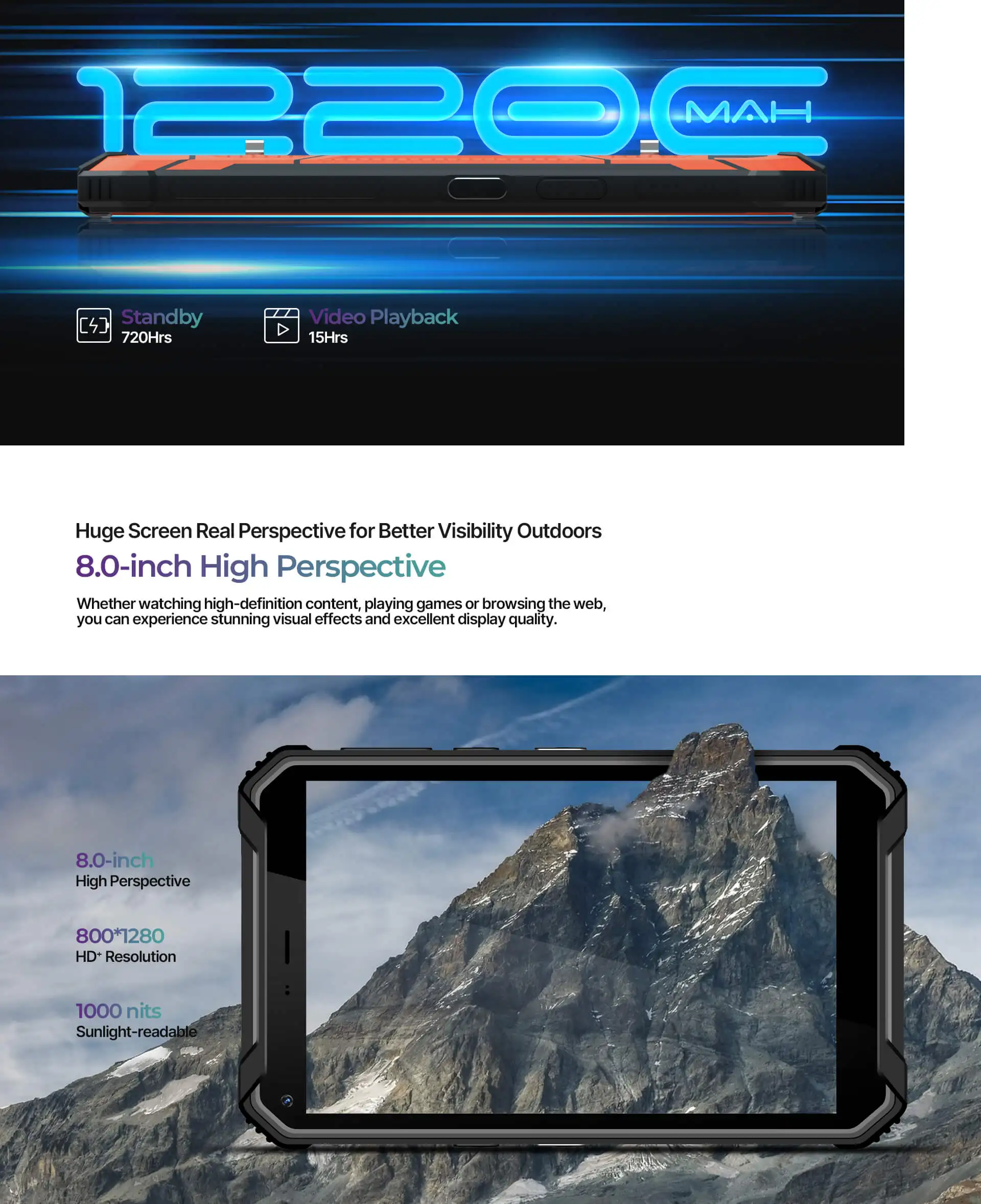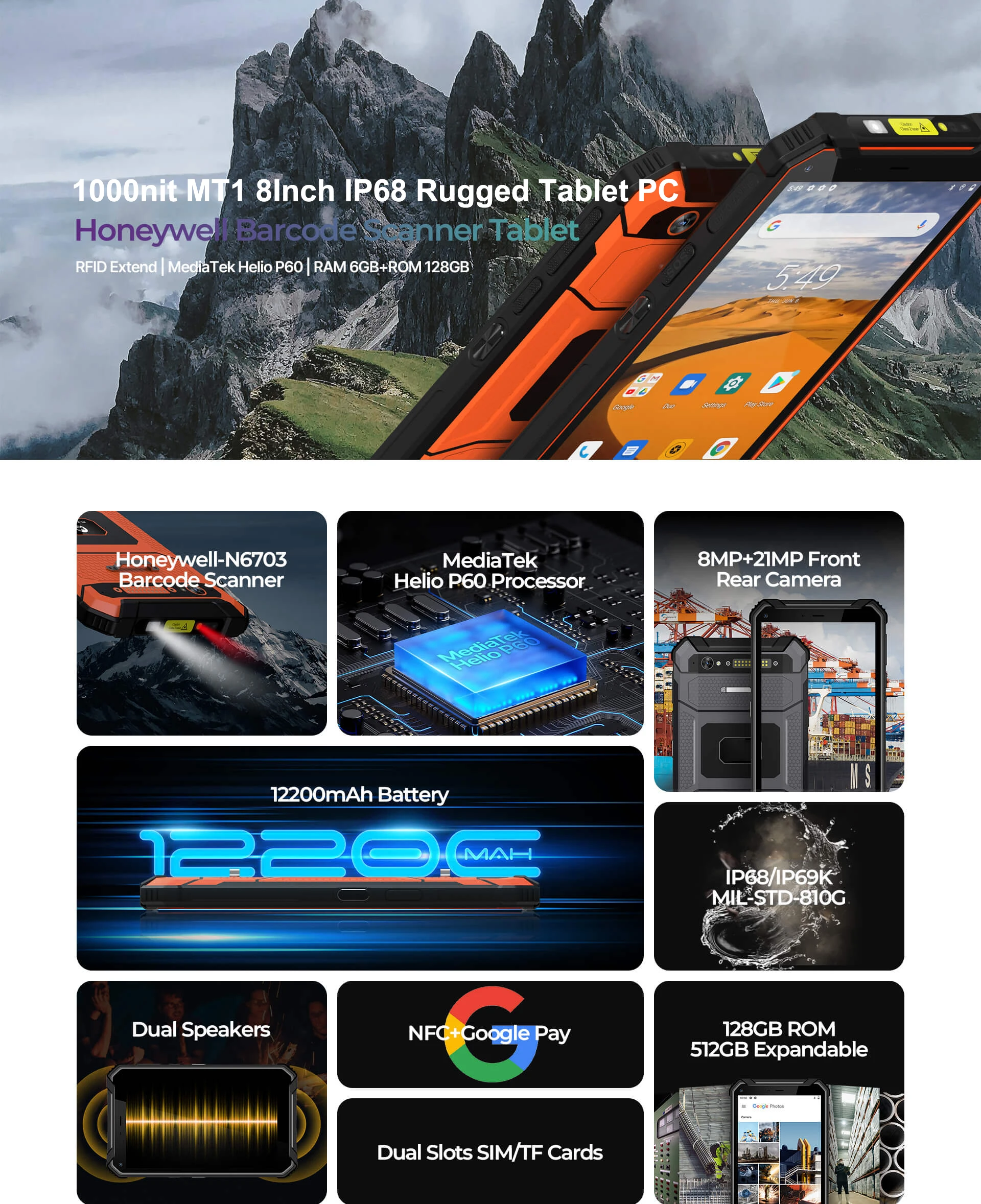 8 Inch 1000Nit Sunlight Readable Rugged Android Tablet PC IP68 Waterproof 6+128GB for DJI Drone Monitor Motorcycle Navigation