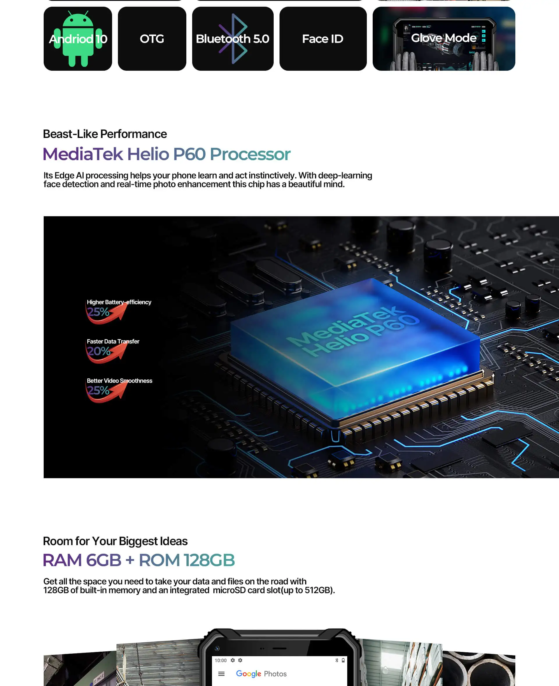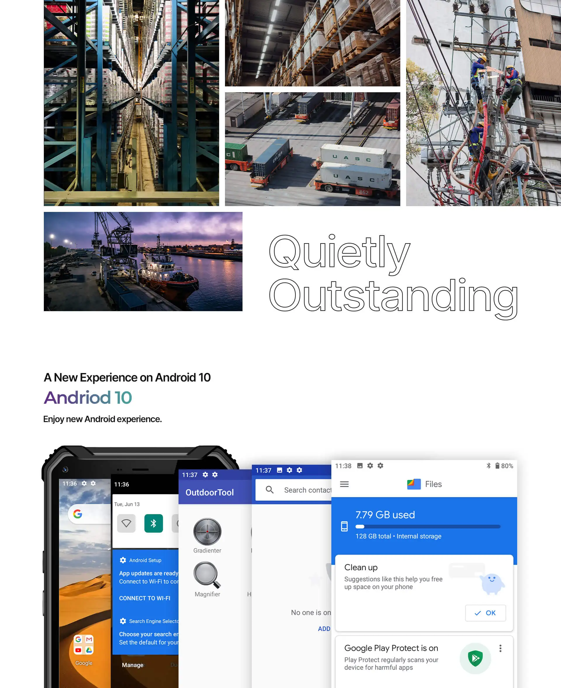 • Support: 4G/Wifi/Bluetooth/GPS/NFC/GMS/OTG/IP68