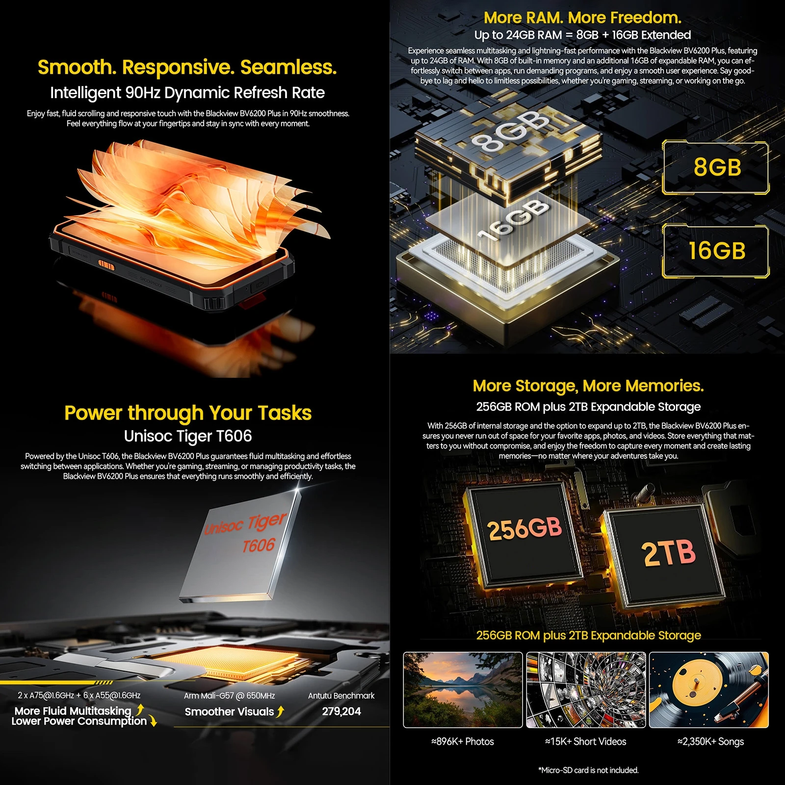 1. CPU: Unisoc UMS9230 T606, octa-core, 2 x A75 1.6GHz + 6 x A55 1.6GHz