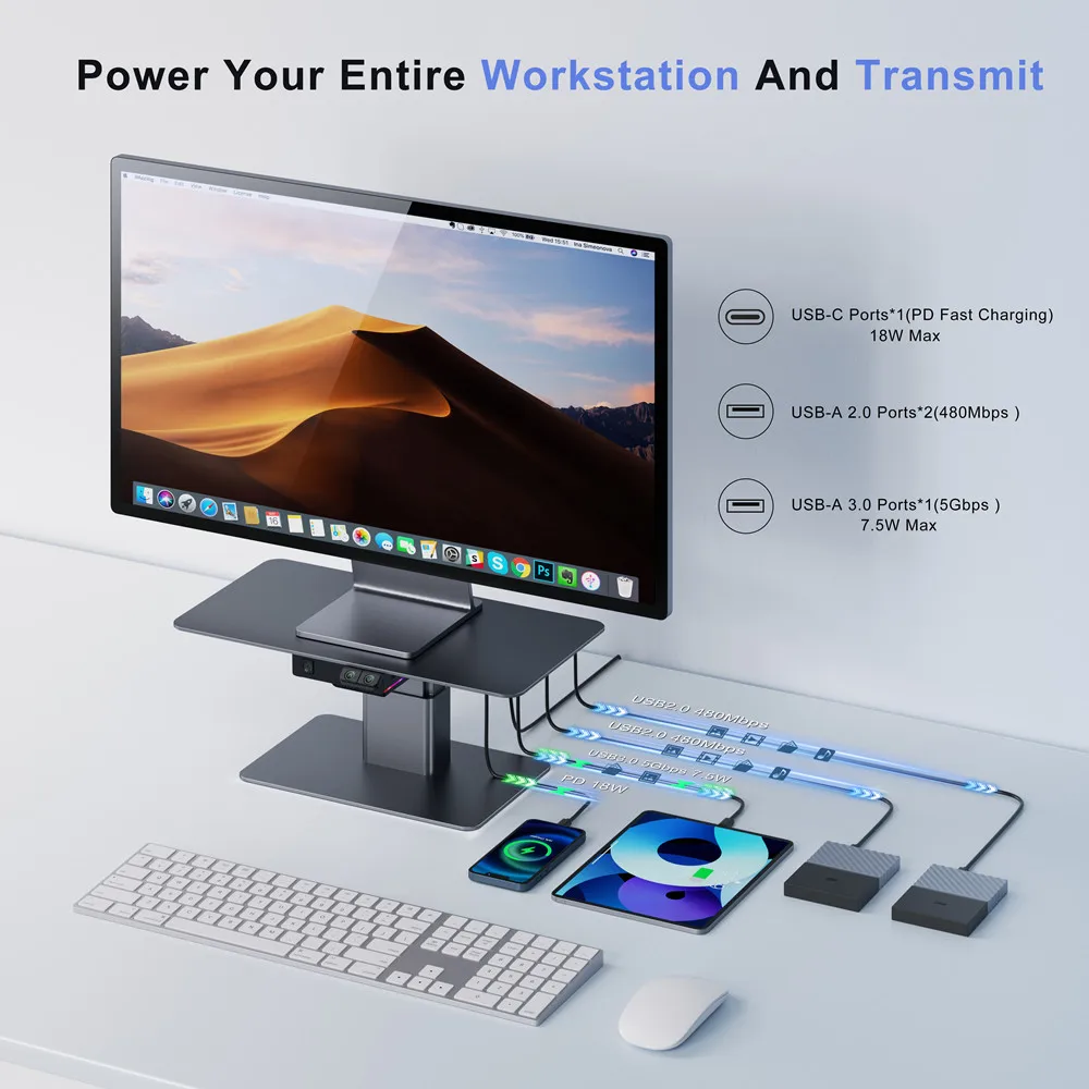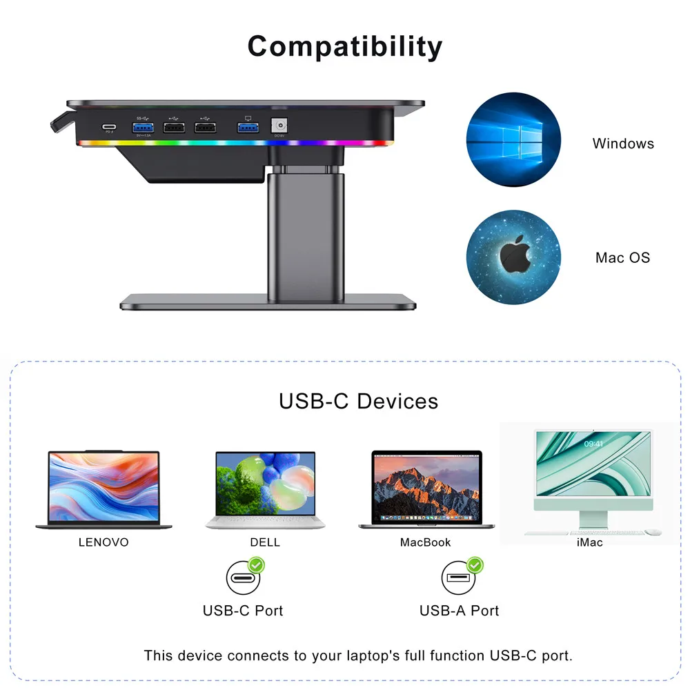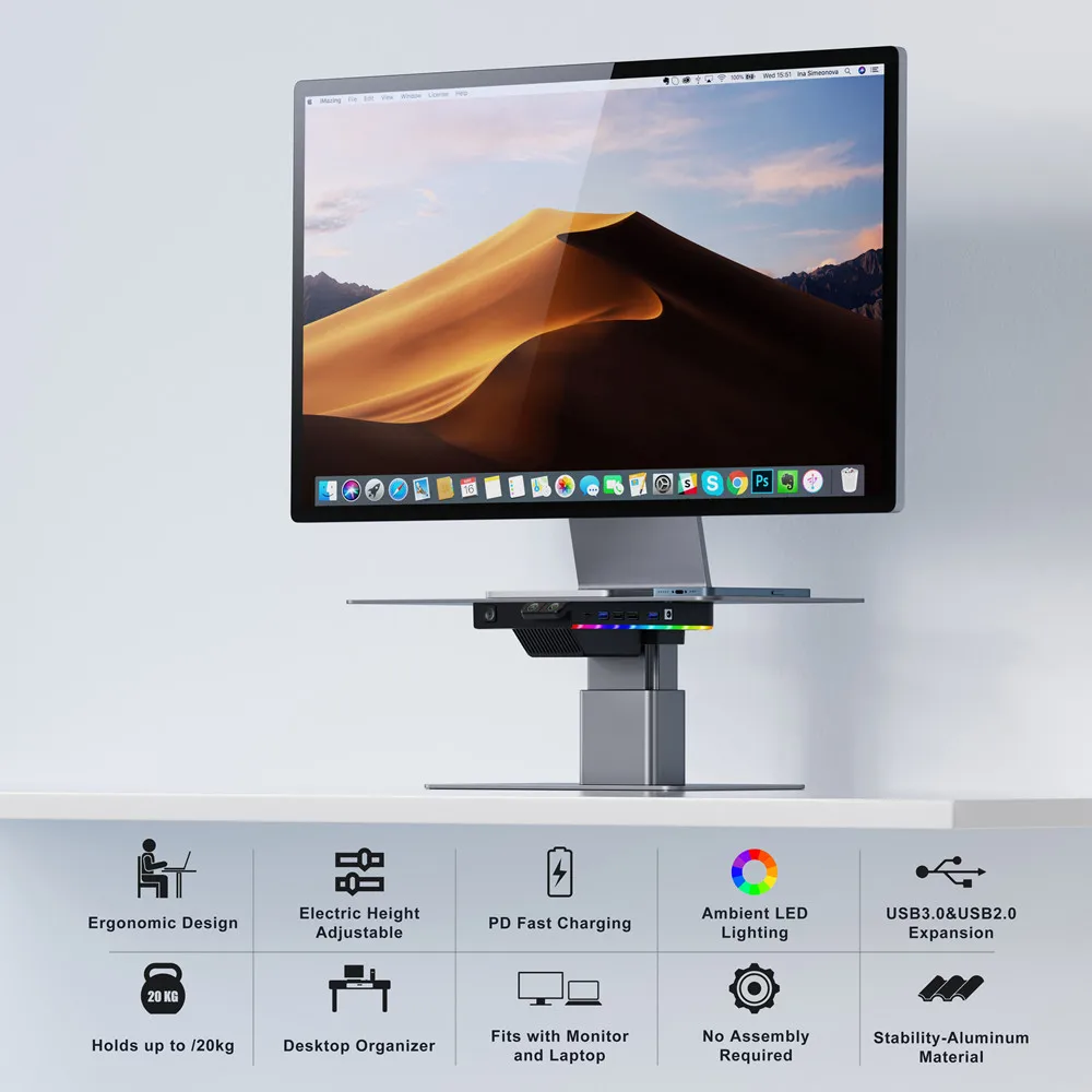 Home Office Desktop Aluminum Gaming Lights Computer LED Monitor Riser Stand with USB HUB