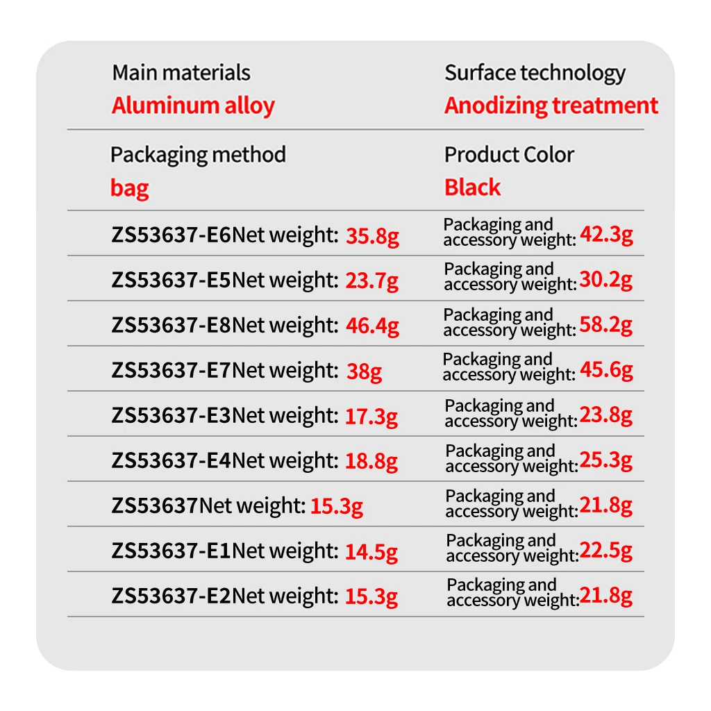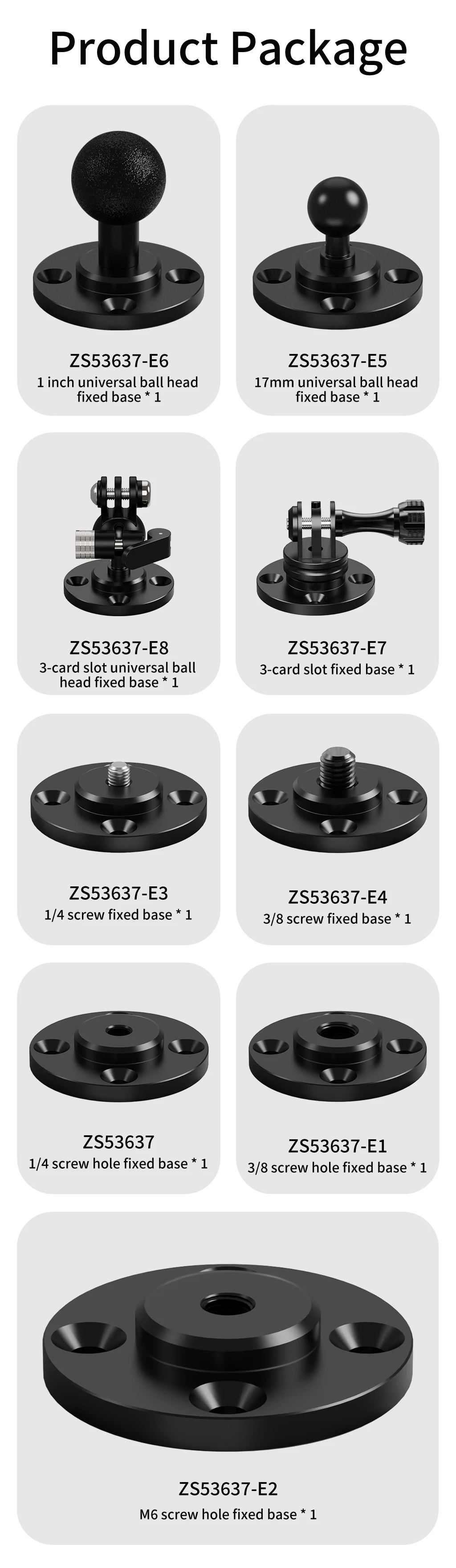size chart images! Each model (e.g., ZS53637-E5 for ball heads) has labeled specs. Still unsure? DM us—we’ll match your gear!*