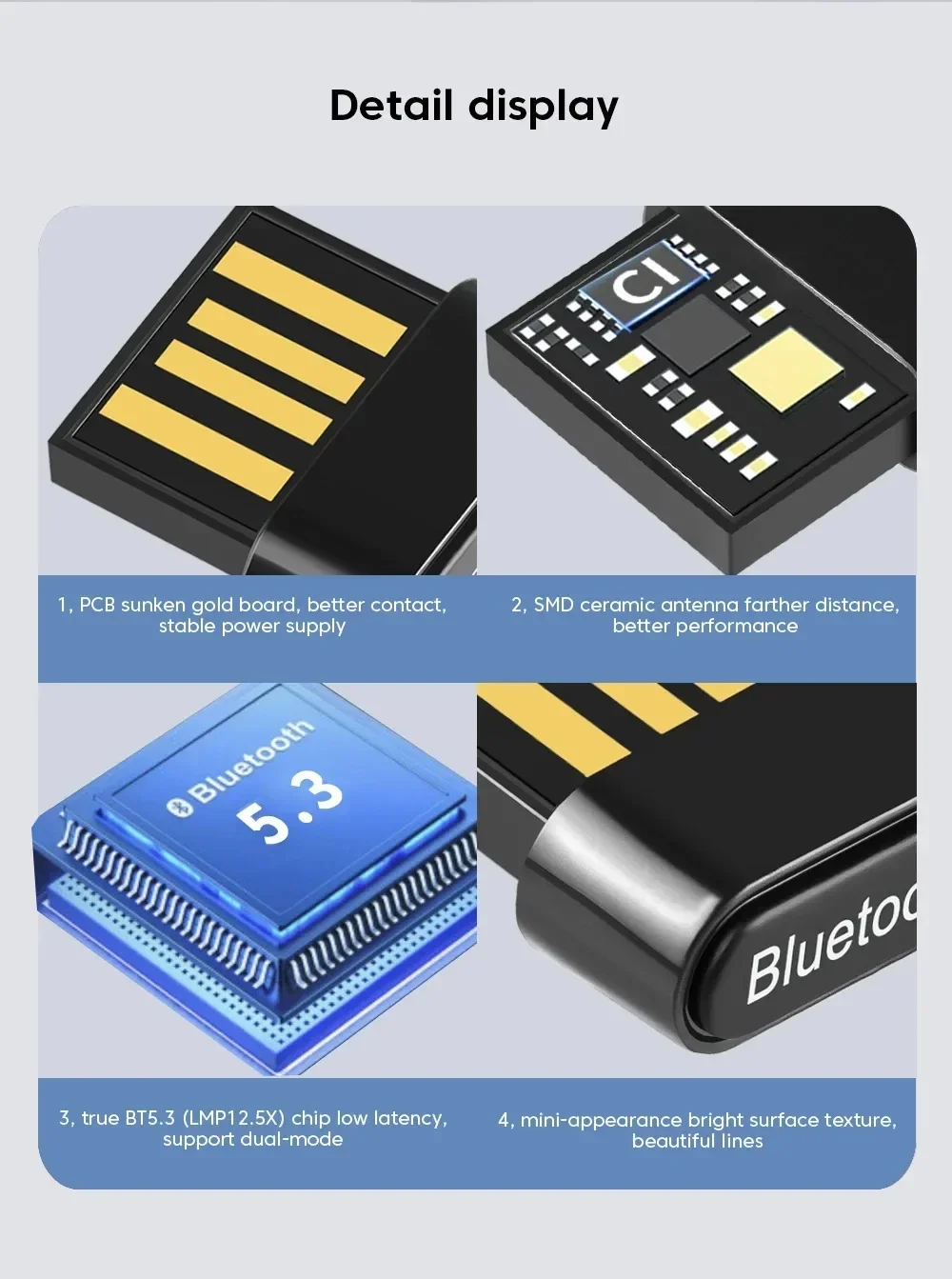 Compatible with Bluetooth 2.0, 3.0, 4.0, 5.0, 5.1 and 5.3 specifications.