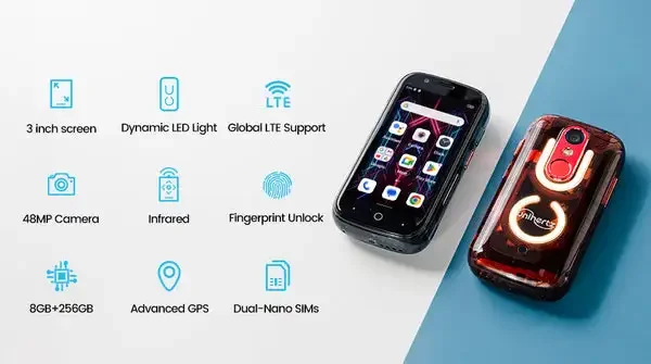 Unihertz Jelly Star Smallest Smartphone Android 13 8GB 256GB Led Light Unlocked Transparent Backshell Cellphone For Spare Phone