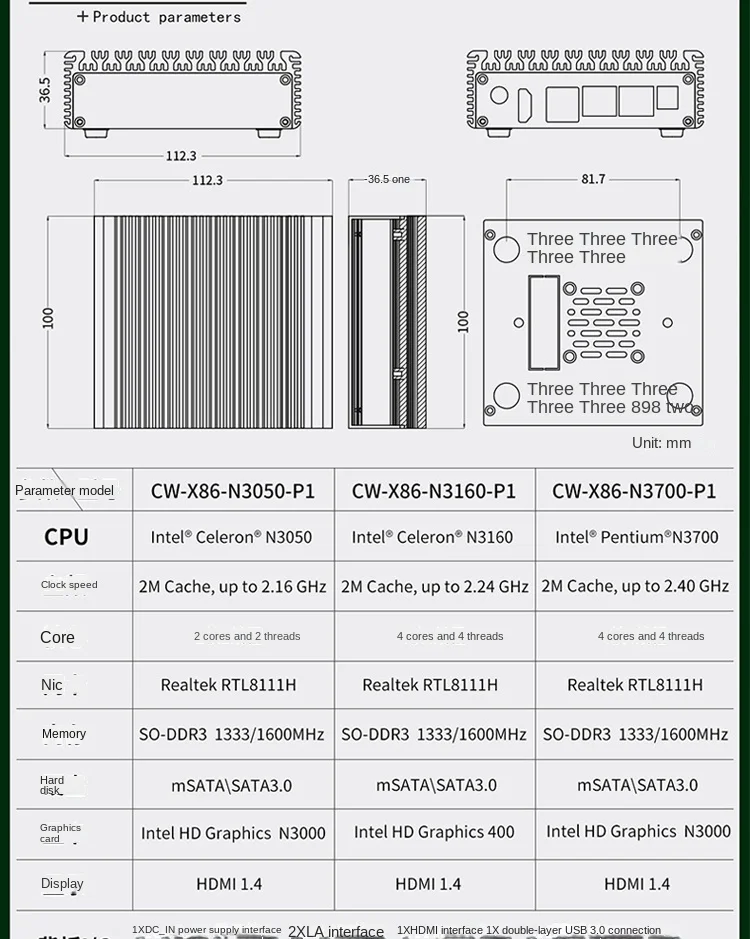 P1 Mini PC 6W Low Power Intel N3050/N3160 Quad Core Quad Thread X86 Soft Router 2*1000M Lan Port HD-MI Output Metal Case PK G31