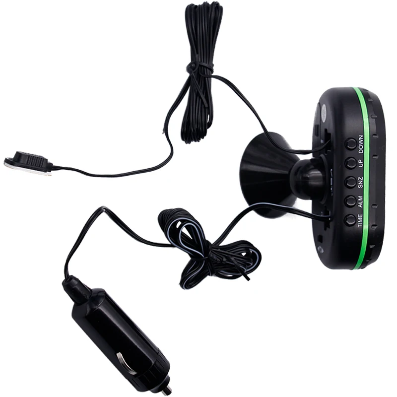 - Two colors blue / green of backlight for choice. When the clock is powered by car cigarette lighter, there would be no backlight when it is powered by backup batteries.