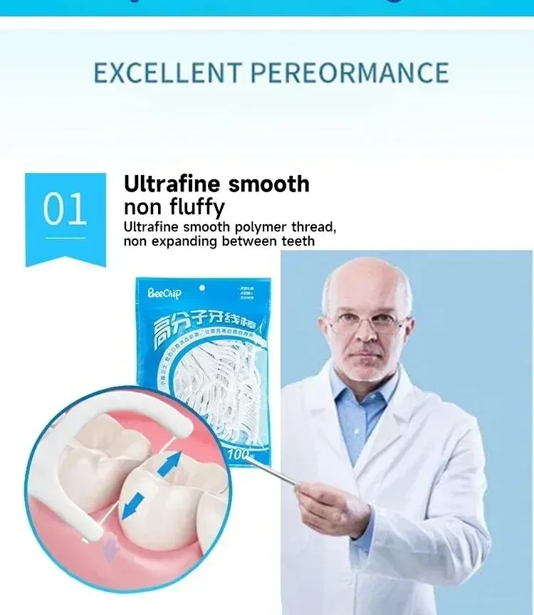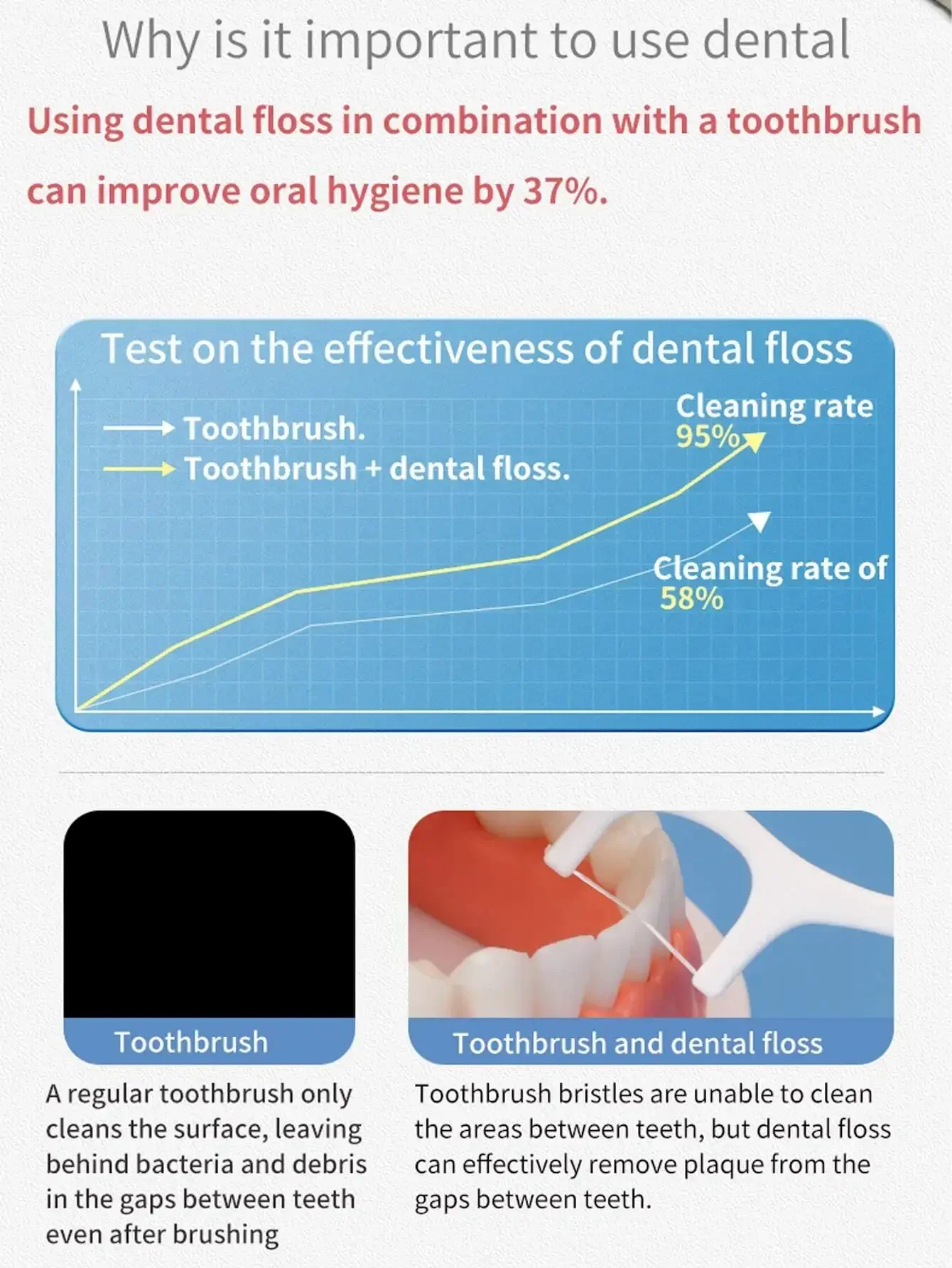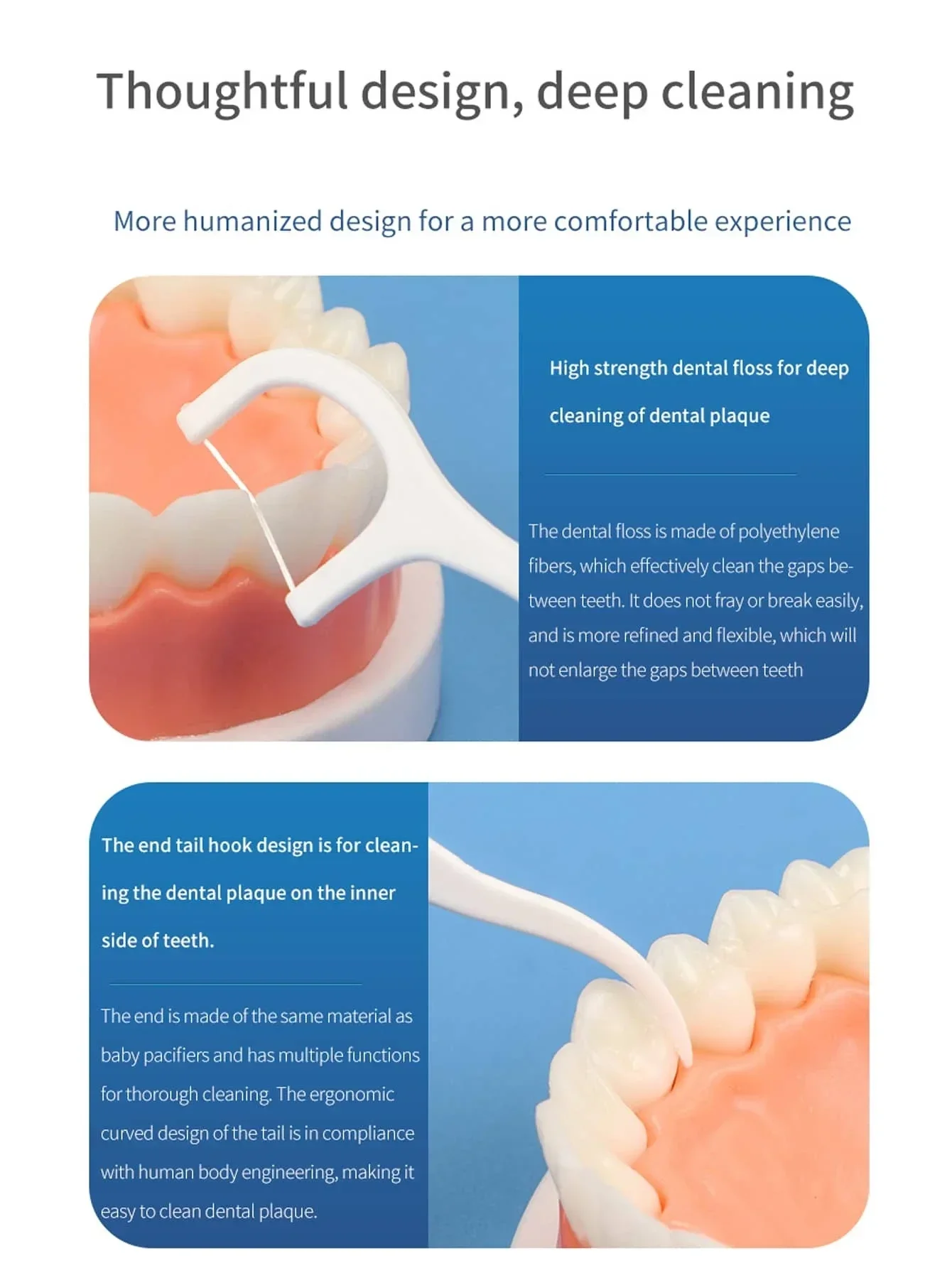🦷High-strength and smooth dental floss professional dental floss stick: The line of the floss sticks are made of polymer material with high strength and not easy to break.