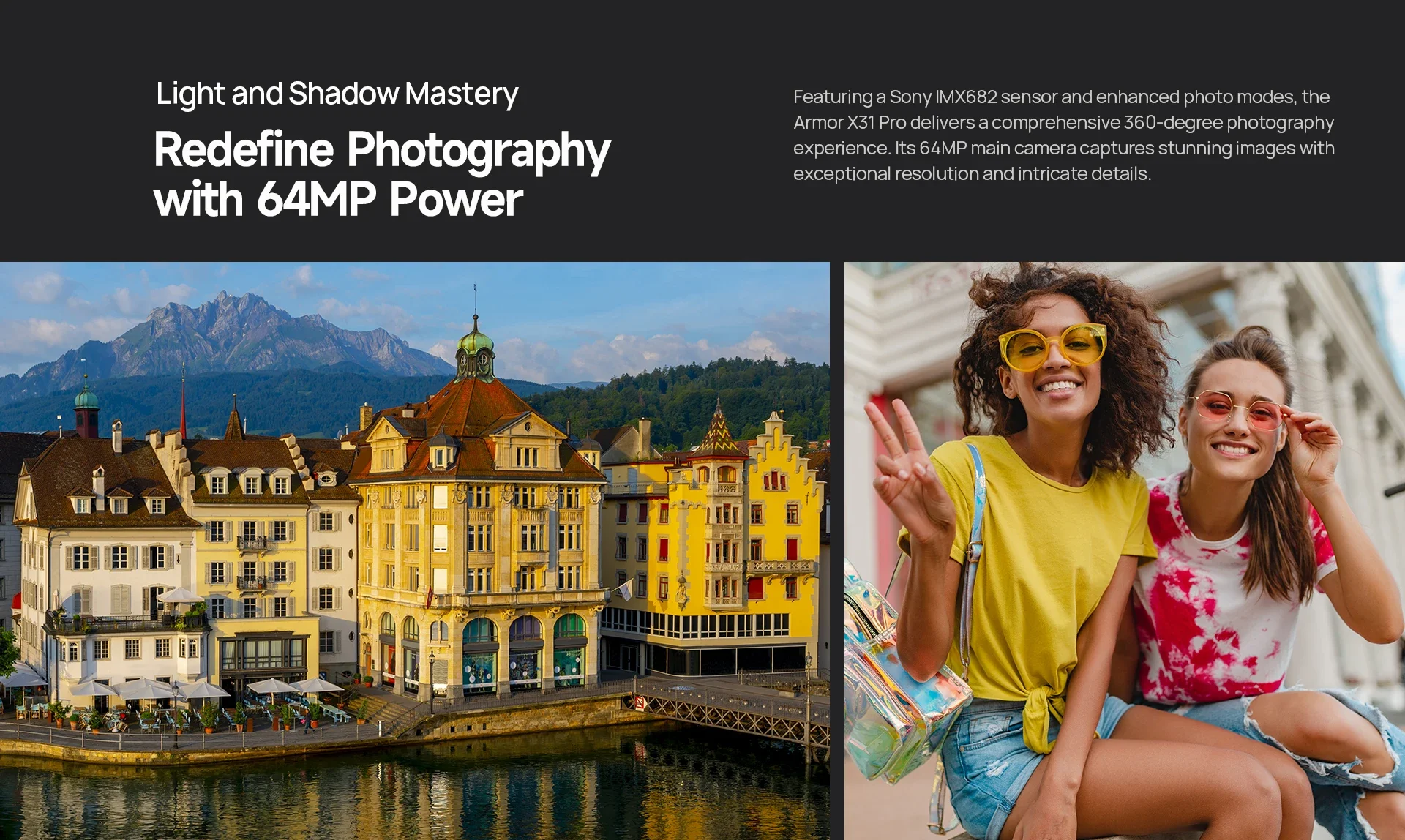 Featuring a Sony IMX682 sensor and enhanced photo modes, the Armor X31 Pro delivers a comprehensive 360-degree photography experience. Its 64MP main camera captures stunning images with exceptional resolution and intricate details.
