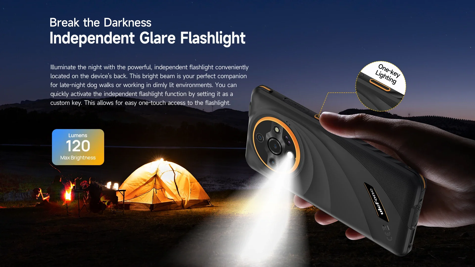 Illuminate the night with the powerful, independent flashlight conveniently located on the device's back. This bright beam is your perfect companion for late-night dog walks or working in dimly lit environments. You can quickly activate the independent flashlight function by setting it as a custom key. This allows for easy one-touch access to the flashlight.