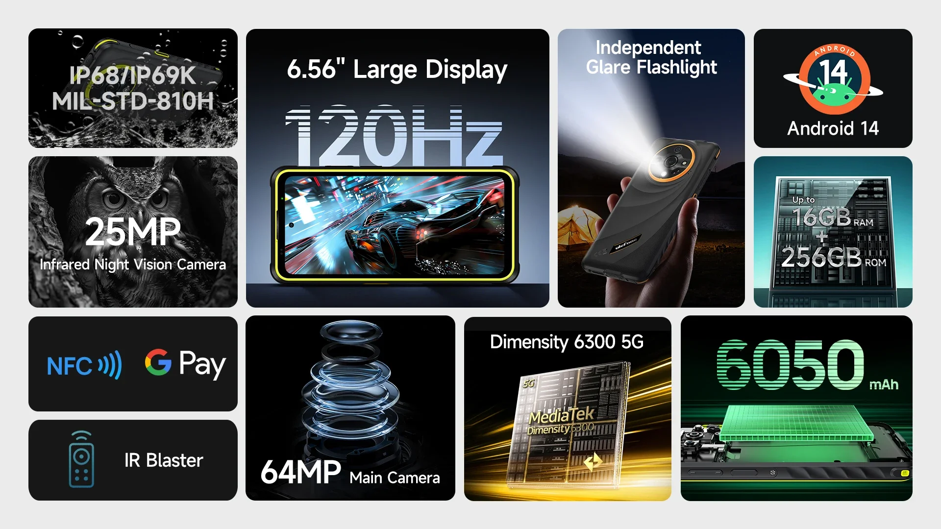 Ulefone Armor X31 Pro 5G Rugged Smartphone 6.56" 120Hz Display Up to 16GB RAM 256GB ROM 64MP Camera Cell Phone NFC Android 14