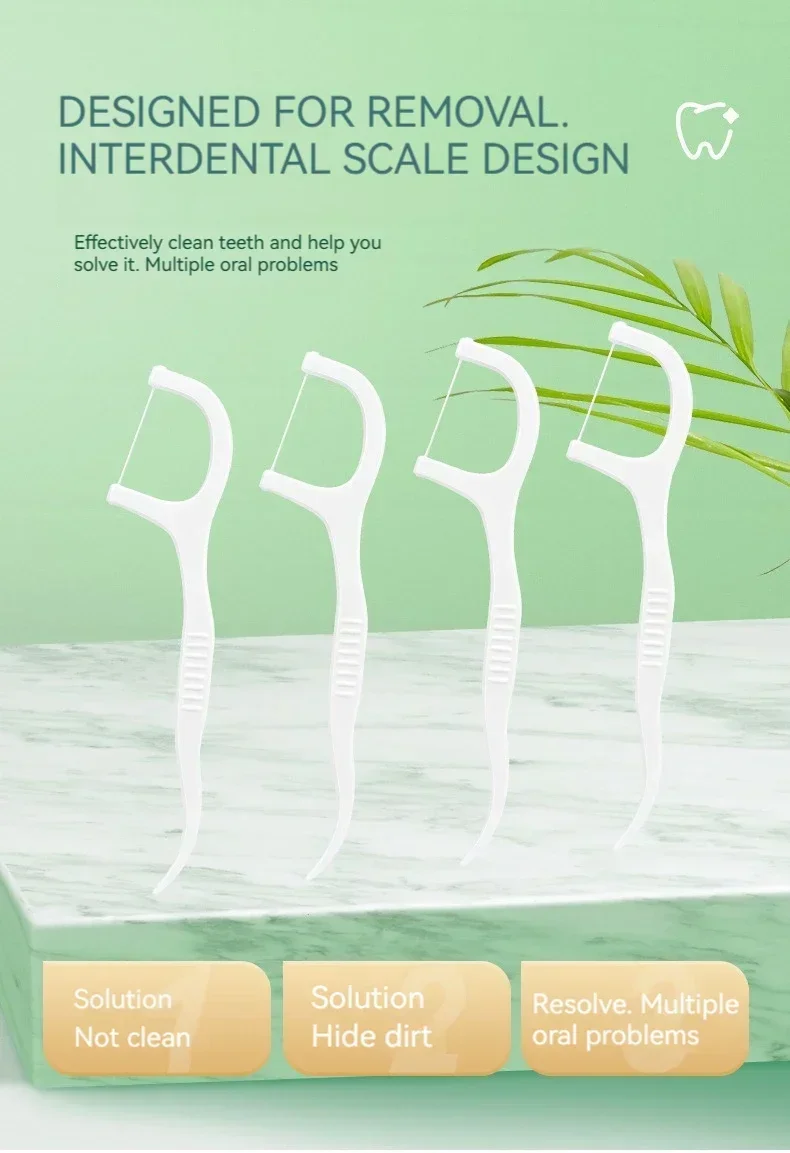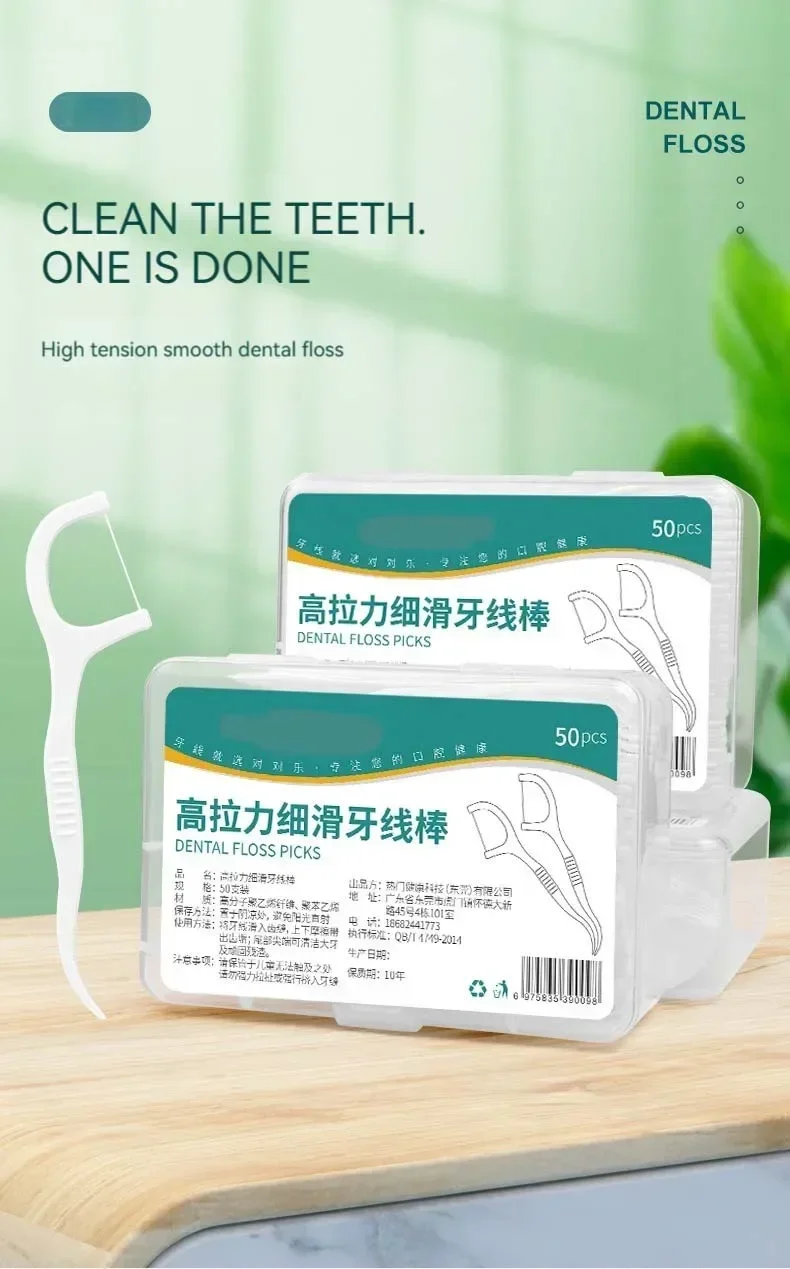 A dental floss stick can clean the teeth. The high-tension fine-sliding dental floss stick and polymer fine-sliding dental floss stick, and the tail hook design can go deep into the inside of the mouth, effectively cleaning the tartar on the inside of the teeth. The polymer polyethylene fiber is used to make dental floss, which goes deep into the teeth, effectively cleaning the teeth, and is flexible, fine-sliding and wear-resistant.