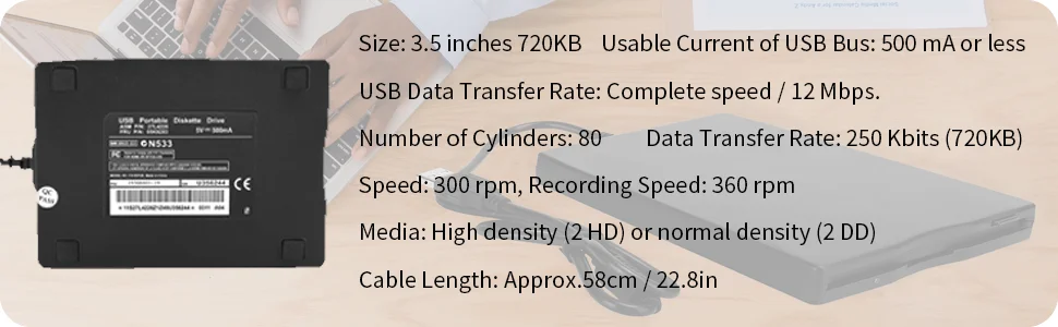 • The power of the 3.5" usb floppy drive get from the USB port, no external power required.