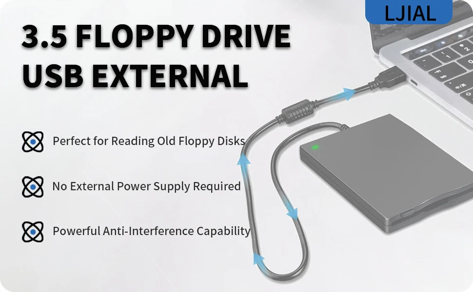 LJIAL USB Floppy Disk Reader Drive,3.5" Portable External 1.44MB FDD Diskette Drive for Windows 11/10/8/7/XP/Vista PC Laptop Mac