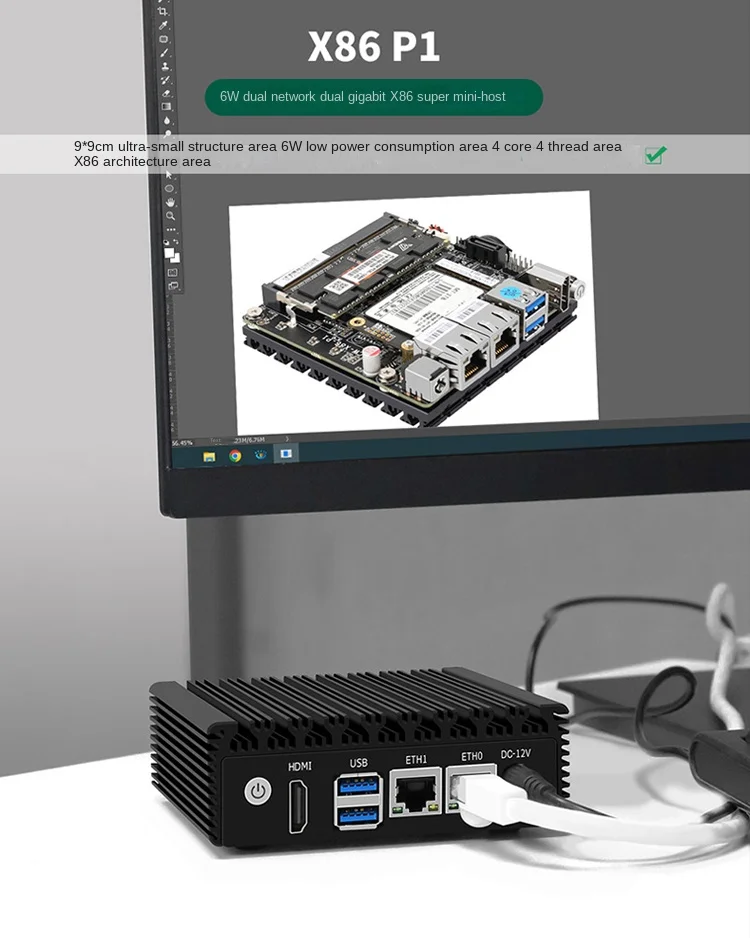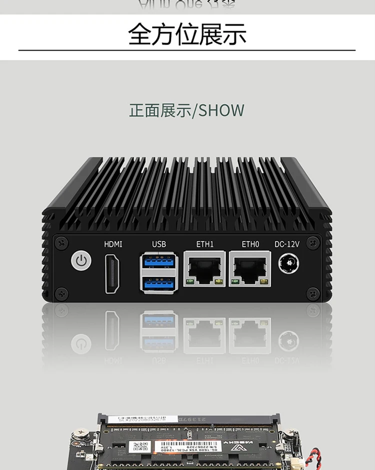 6W Low Power Intel N3050/N3160 Quad Core Quad Thread X86 Soft Router 2*1000M Lan Port HD-MI Output Metal Case Mini PC