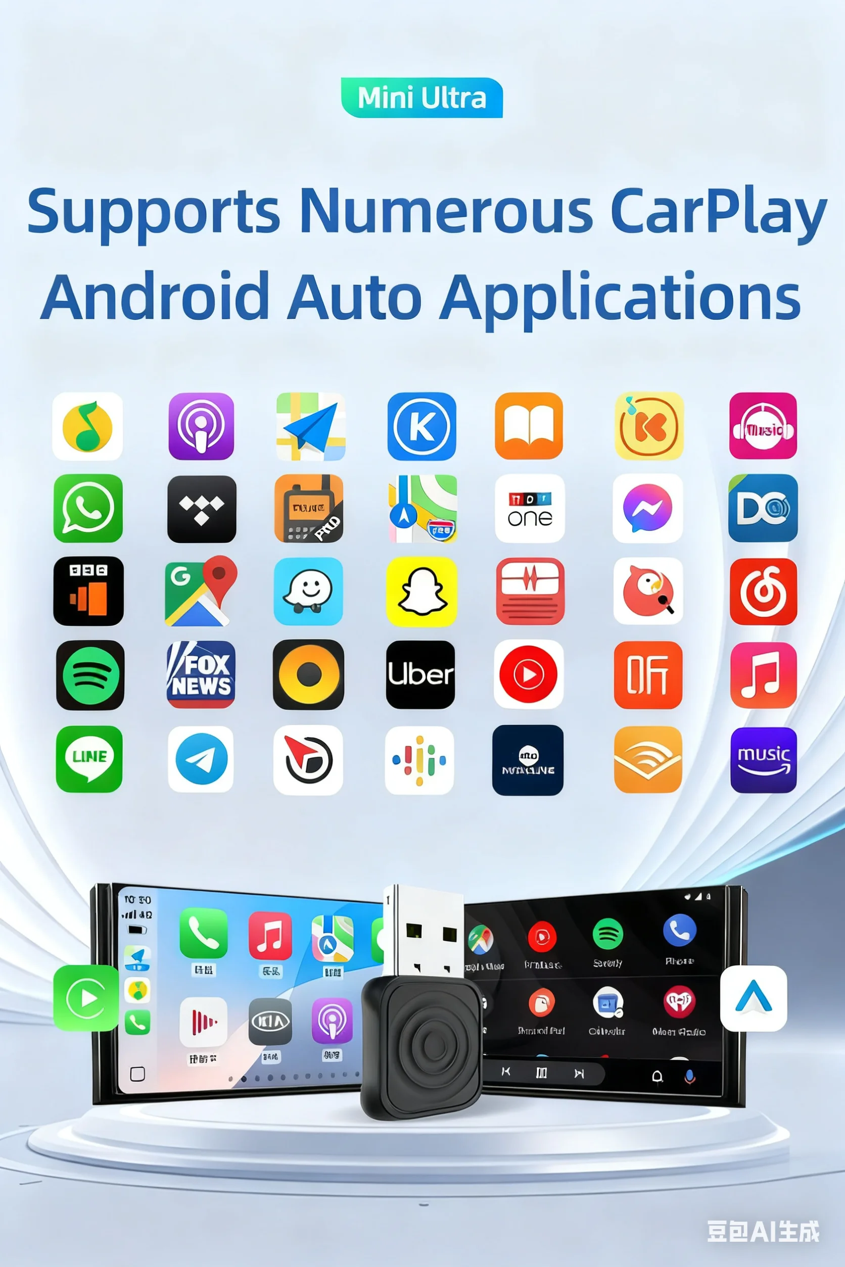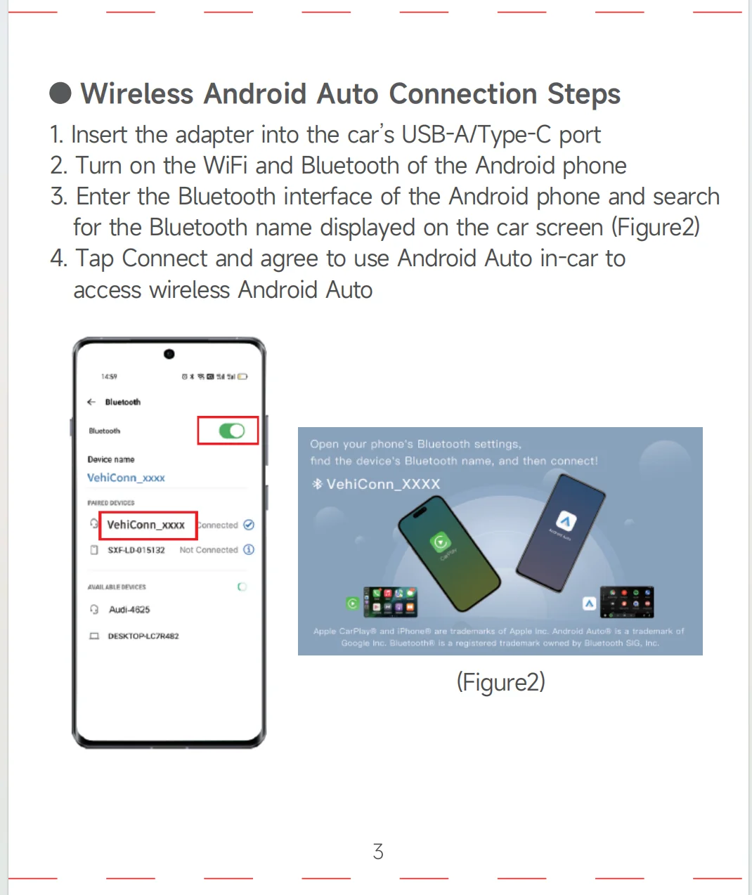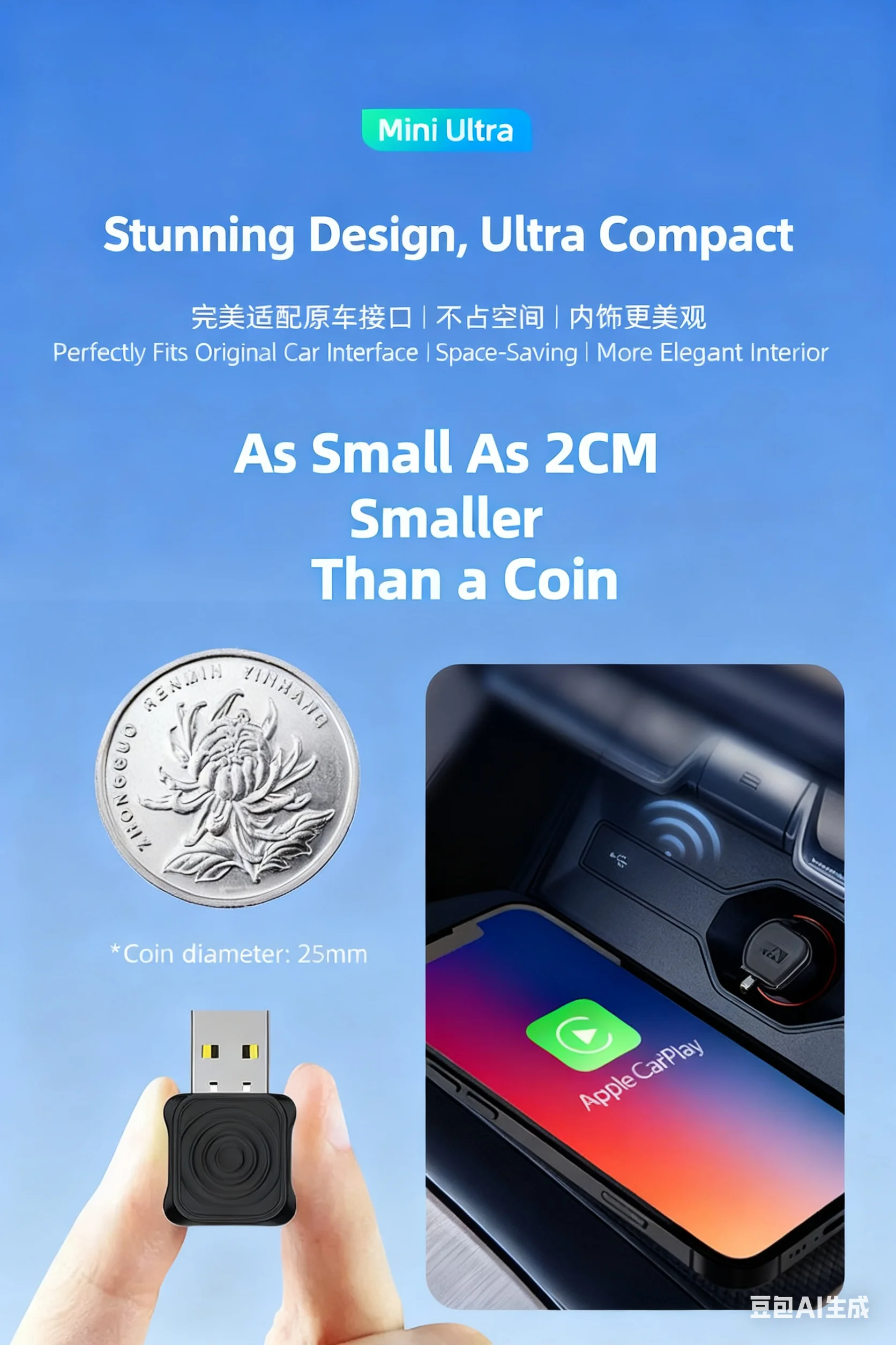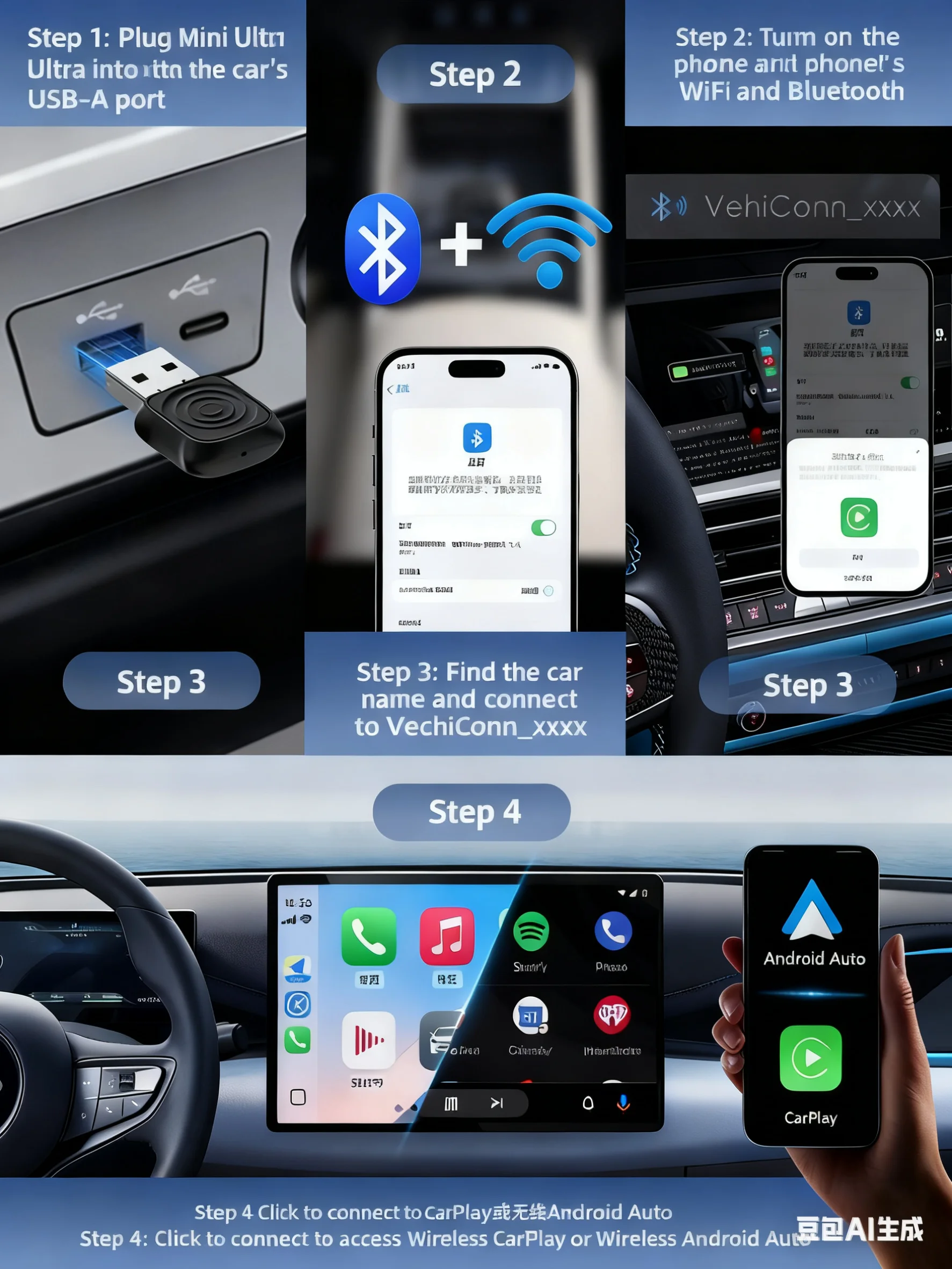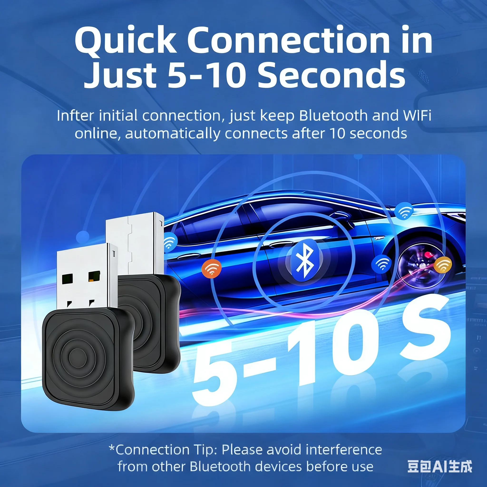 2.Supports wired to wireless CarPlay & wireless Android Auto, BT pairing, and Wi-Fi transmission.