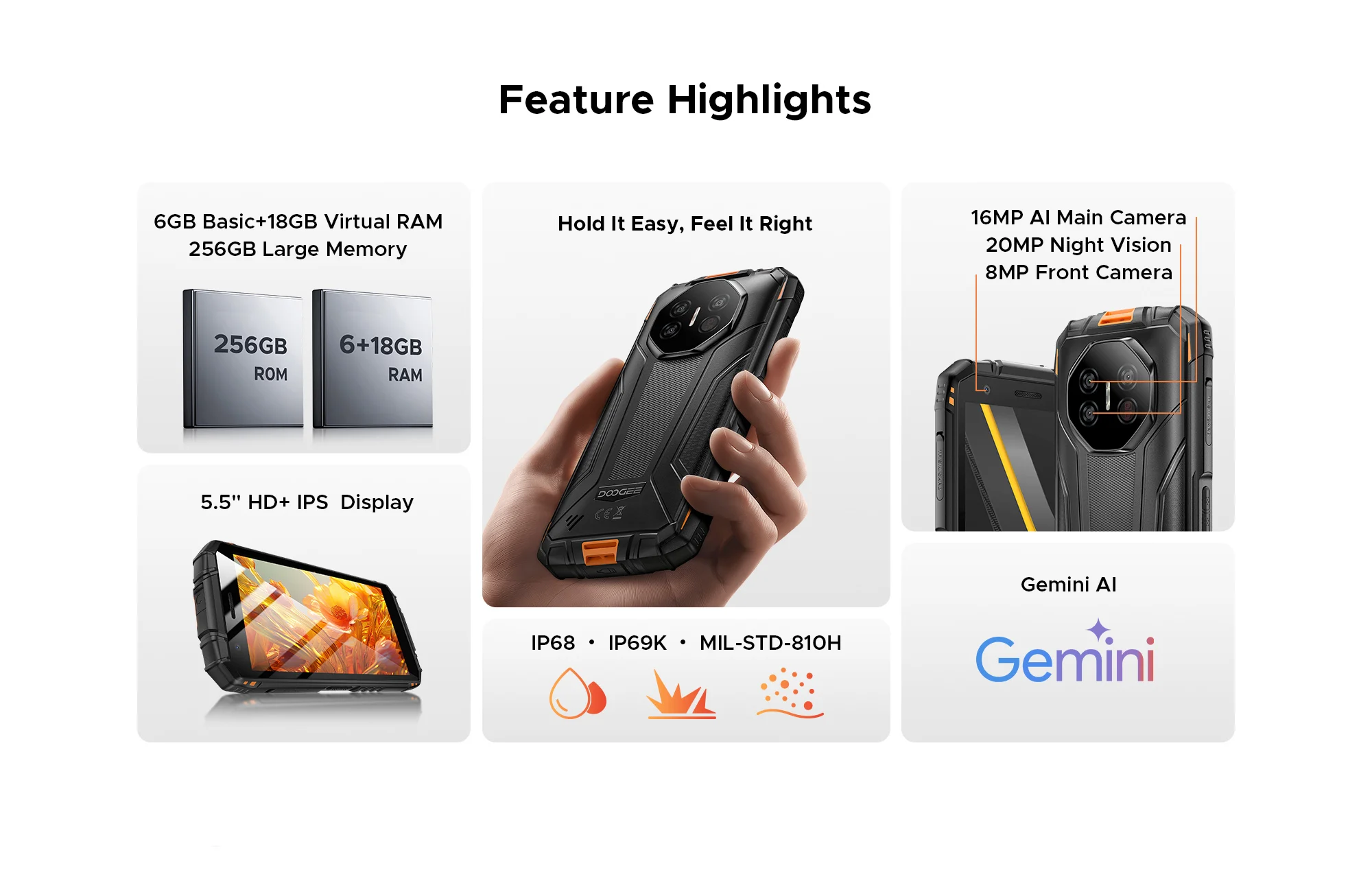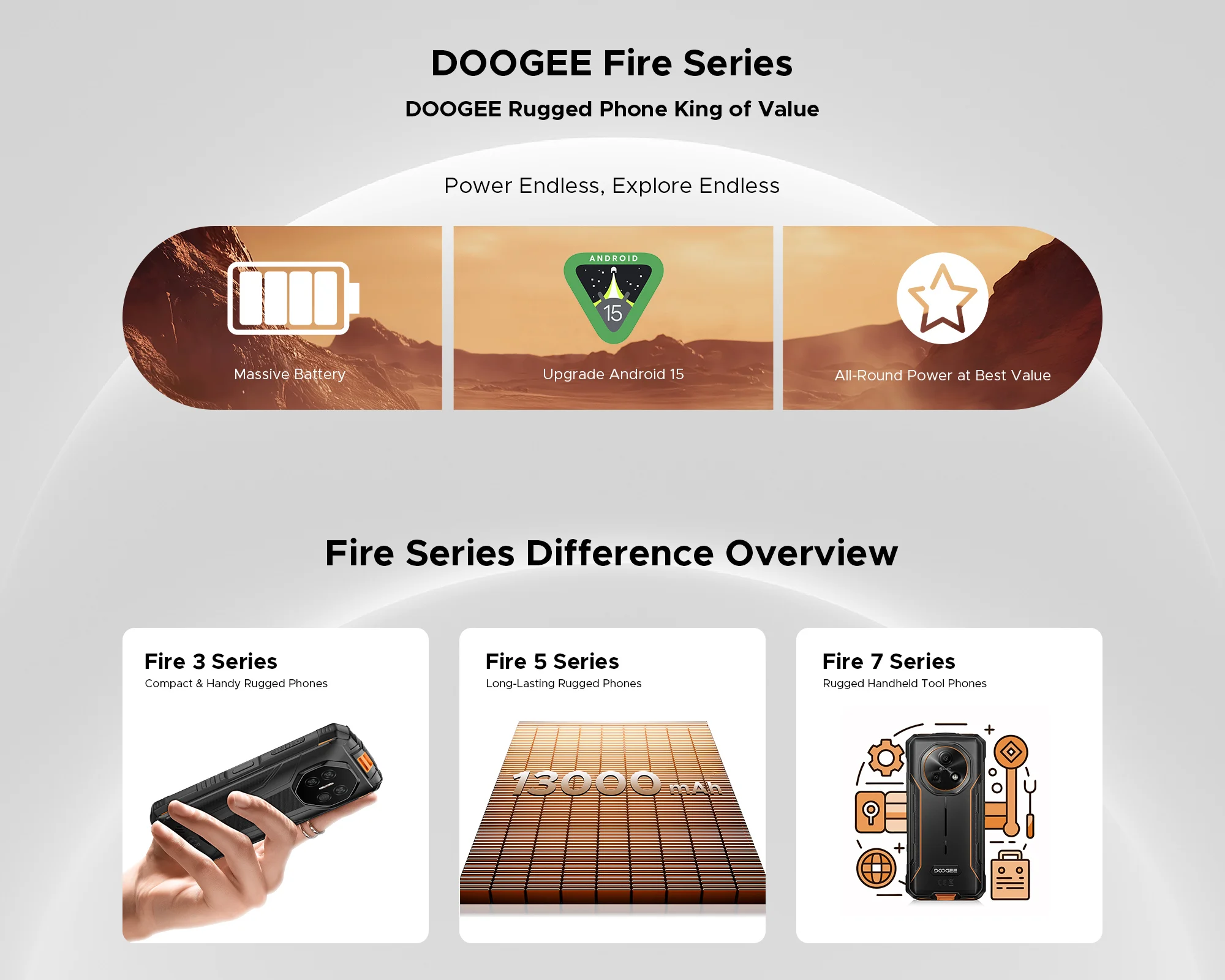2025 NEW DOOGEE Fire 3 Ultra Rugged Smartphon 5G 5.5" HD 24GB RAM 256GB ROM Cell Phone 8350mAh Android 15 NFC Telephone Portable