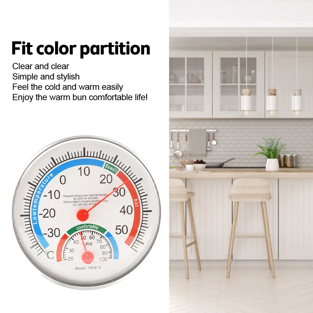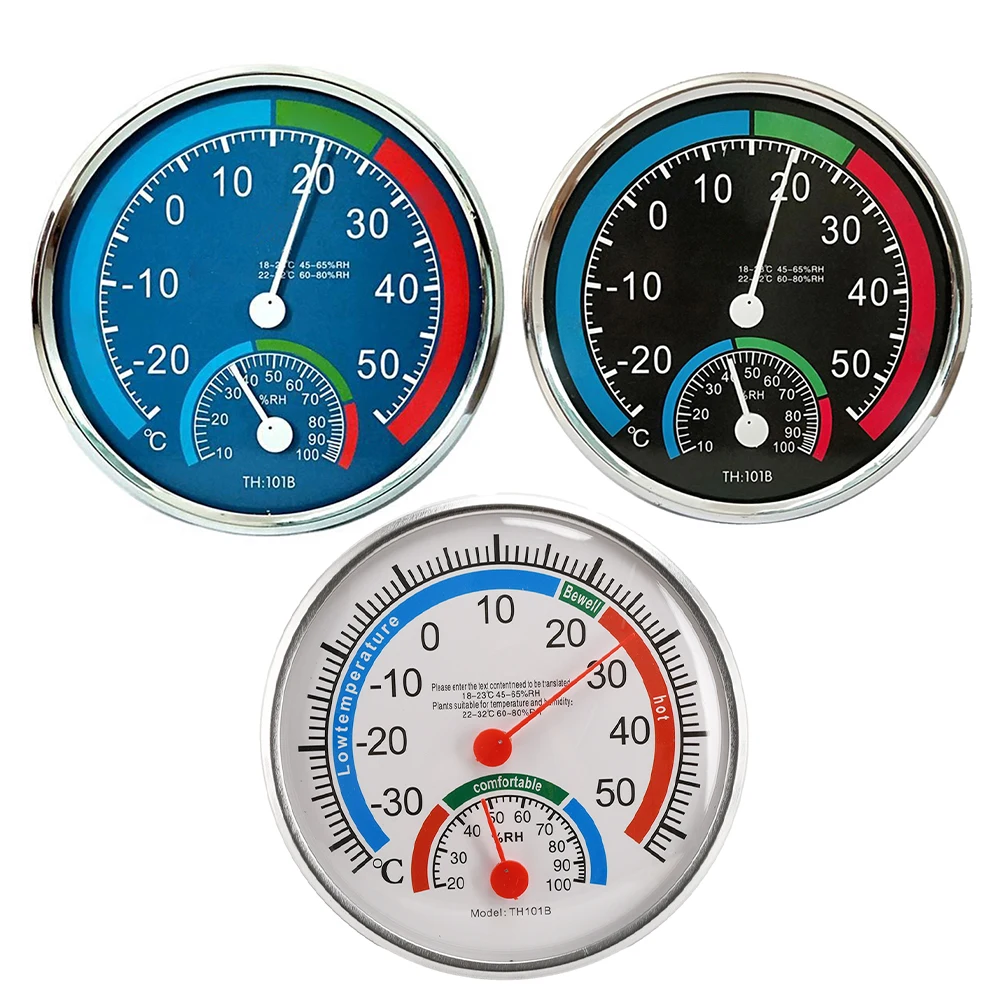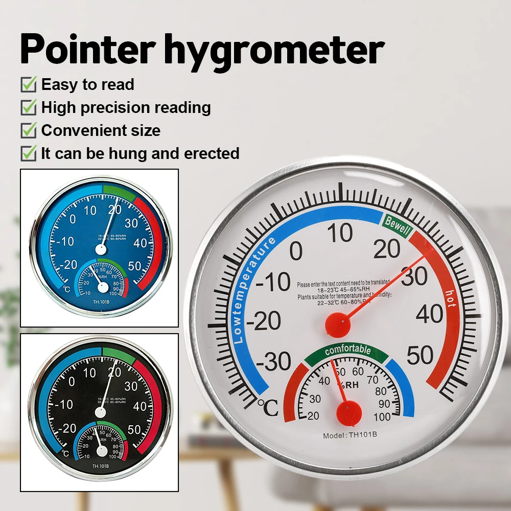 Mini Round Pointer Thermometer Hygrometer -30℃-50℃ Thermometer 20%-100% Hygrometer Indoor Office Humidity Monitor