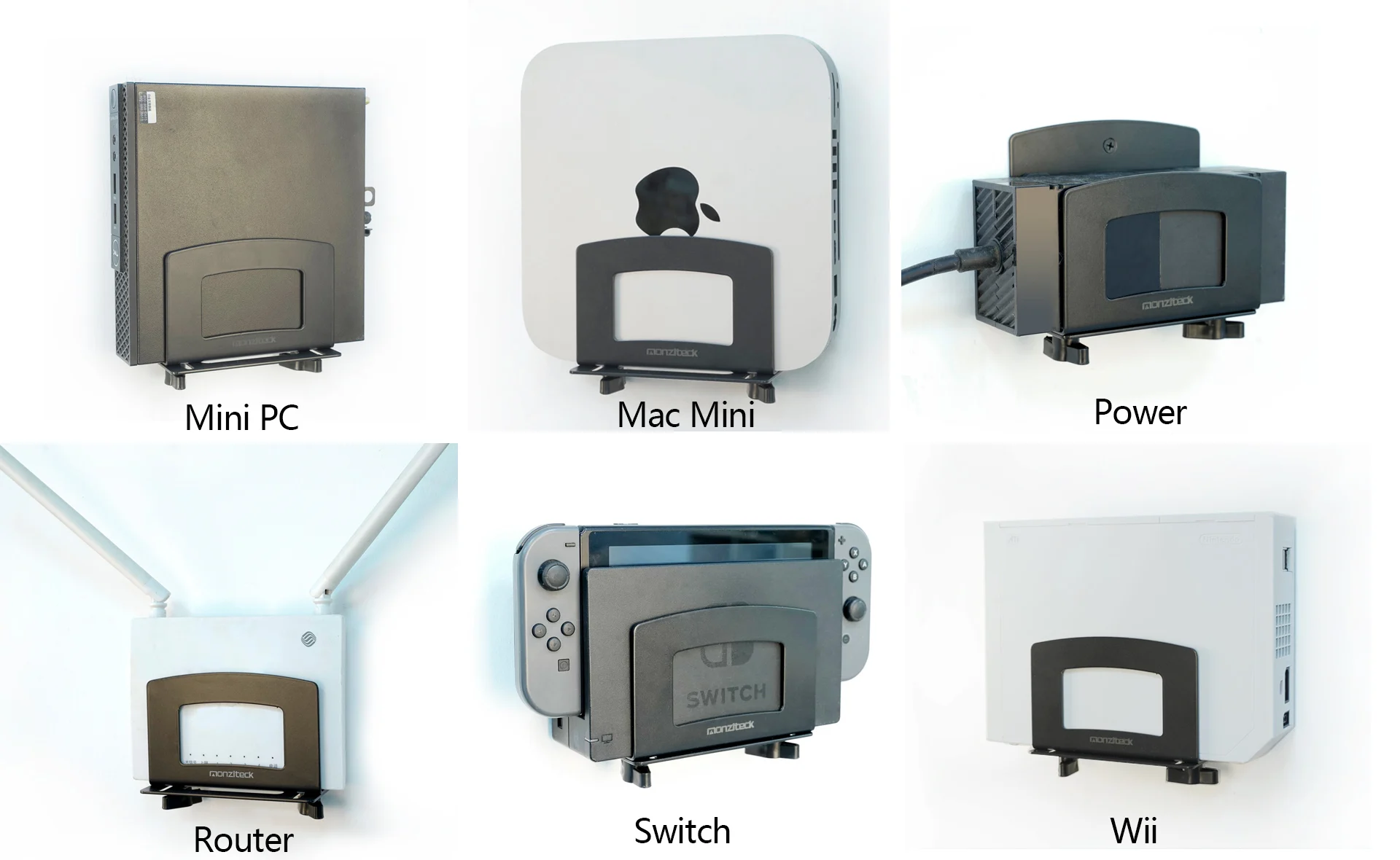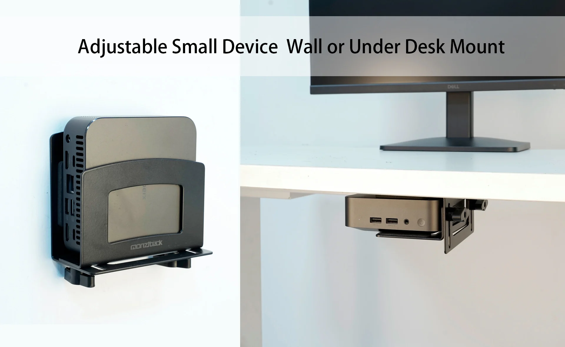 Monzlteck Adjustable Small Device Wall Mount Or VESA Mount Behind The Monitor |Design for Streaming Media Player, Switch, WII,Ca