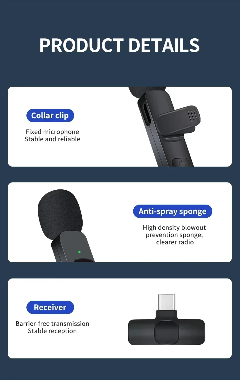 Near invisible Mini design,Small size, can be arbitrarily clampedon clothes,Get rid of wired constraints and occupy no space