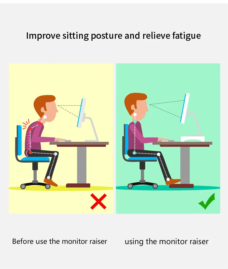 Raise your device 6 cm to fit your sitting pose well and keep cozy for working.
