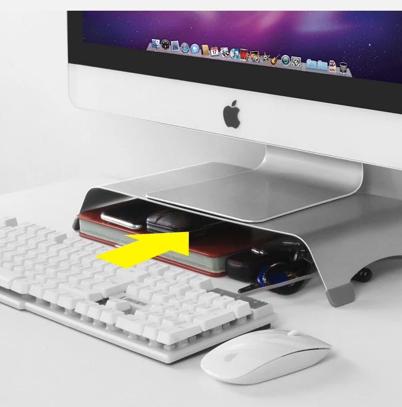 - A small storage space on the bottom of the stand, you can store mouse, keyboard, hard drive disk and other small things, be convenient and save room.